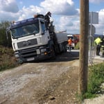 Am Einsatzort fand man einen LKW vor, welcher beim Versuch in unbefestigtes Gelände zu fahren, seitlich übers Bankett in den Graben rutschte. Da sich die Einsatzstelle direkt neben der Eisenbahnkreuzung befand, wurde sofort seitens der Einsatzleitung Kontakt mit der ÖBB aufgenommen, um die Strecke zu sperren.