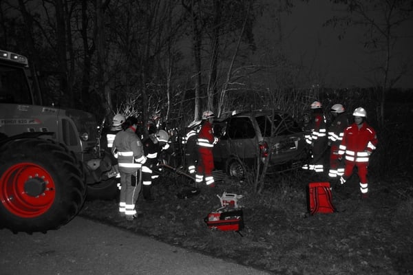 Übungsannahme war ein Verkehrsunfall zwischen einem PKW und einem LKW. Dabei wurde der Personenkraftwagen in einen Windschutzgürtel geschleudert. Aufgrund des Aufpralls wurden zwei Personen im Fahrzeug eingeklemmt. Weiters konnte der Chaffeur des Lastkraftwagen nicht mehr selbstständig seine Fahrerkabine verlassen.