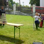 Bei der Feuerwehr präsentierte man das Hilfeleistungsfahrzeug gemeinsam mit einer Feuerlöschervorführung und Dosenschießen mit der Kübelspritze.
