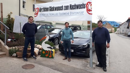 In Vertretung der Mannschaft der Freiwilligen Feuerwehr Statzendorf überbrachten Kommandant Michael Weiss und Stellvertreter Thomas Hell die Glückwünsche an die glücklichen Eltern.