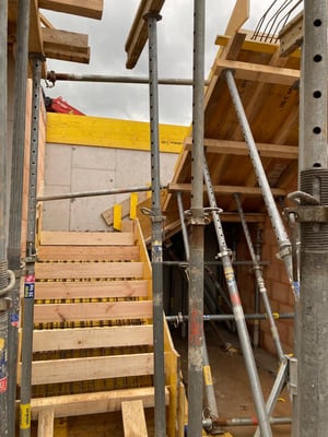 In der letzten Woche wurde die Schalung des Verwaltungsgebäudes entfernt und in weiterer Folge Vorbereitungen für die Anlieferung der Decke getroffen.