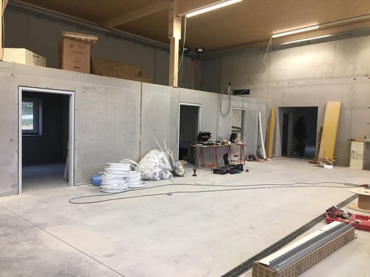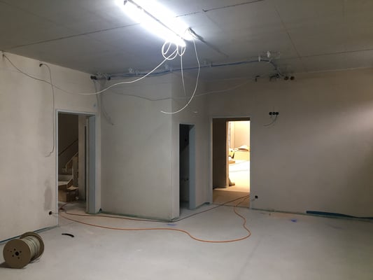 Am vergangenen Wochenende wurden die Wärmepumpen angeschlossen und in Betrieb genommen. Ab sofort wird der Estrich ausgeheizt und für den Fliesenleger werden alle Vorbereitungen getroffen. Die Elektroinstallationen nehmen ebenfalls Formen an. Sämtliche Verkabelungen für Notbeleuchtung, Rauchmelder, Licht und EDV wurden vorgenommen.