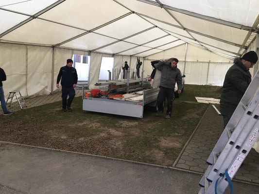 Die Vorbereitungsarbeiten für die Sirenenparty laufen eine Woche vor dem Start bereits auf Hochtouren. Nachdem auf der Baustelle beim Feuerwehrhaus einige Kameraden mit den Elektroinstallationen beschäftigt waren, bauten weitere Helfer das Zelt für die Gäste auf.