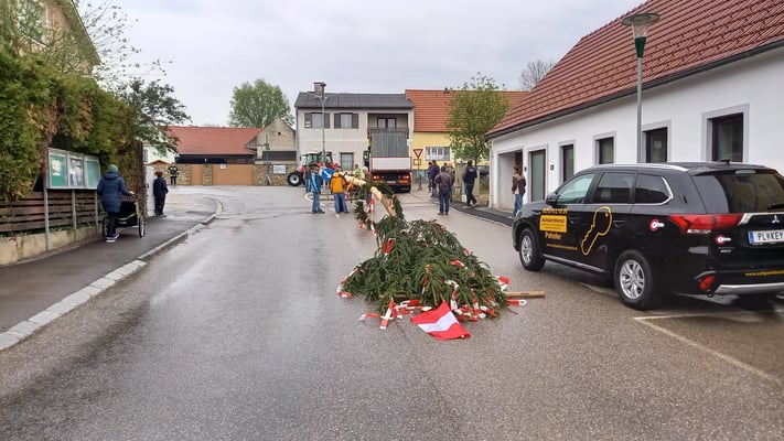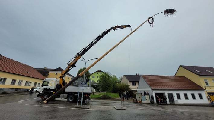 Wie es die Tradition verlangt wurde auch heuer wieder der Maibaum vom Dunkelsteinerwald abgeholt und in weiterer Folge am Freitag, den 29. April am Statzendorfer Dorfplatz aufgestellt. Die beachtliche Höhe beträgt 36 Meter.