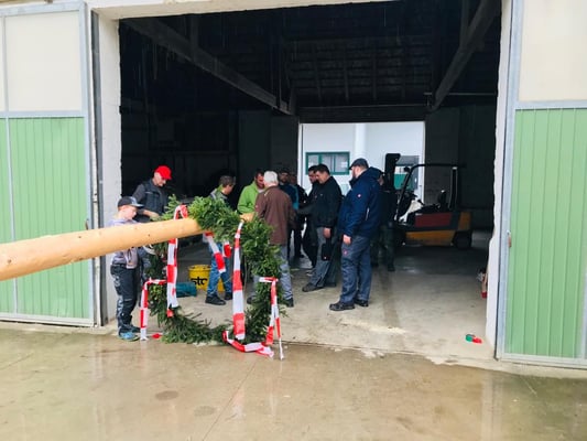 Trotz der intensiven Arbeiten im neuen Feuerwehrhaus fanden sich einige Kameraden um den Maibaum aufzustellen. Im Anschluss lud der Jubilar die Mannschaft ins Gasthaus der Familie Deimbacher zu Speis und Trank. Auch auf diesem Weg, herzlichen Dank! Ob der Maibaum im nächsten Jahr am gleichen Standort aufgestellt wird, steht derzeit noch in den Sternen.