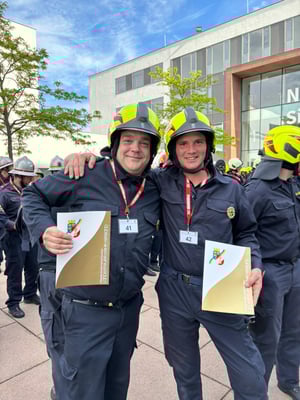 Bei der Siegerehrung war es dann soweit. Beide Kameraden konnten das begehrte Abzeichen in Empfang nehmen. Zurecht können die Beiden stolz auf ihre Leistungen rund um die "Feuerwehr Matura" sein. Am Abend warteten bereits einige Kameraden beim neuen Feuerwehrhaus um die Zwei zu Beglückwünschen. Herzliche Gratulation nochmals, auch auf diesen Weg.