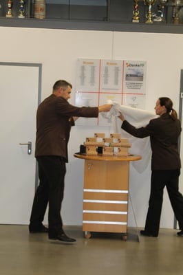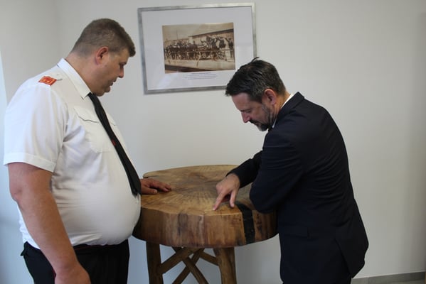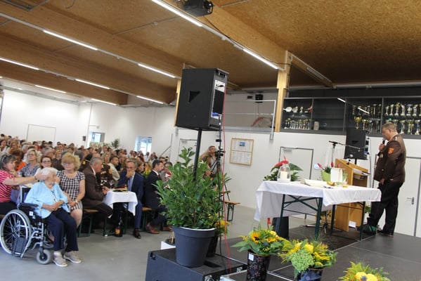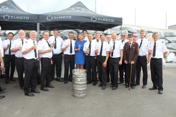 Gefeiert wurde nicht nur die offizielle Eröffnung des Hauses, sondern auch das 25-jährige Bestehen der Feuerwehr-Freundschaft mit den Kameraden aus Malgersdorf (Bayern). 1. Kommandant Gerhard Wagner und seine Mannen stellten sich mit einem übergroßen Bild als Präsent ein, das das neue Feuerwehrhaus zeigt.