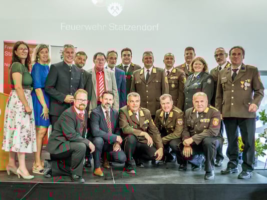 Dem Festakt wohnte eine Vielzahl an Prominenten bei. Landesfeuerwehrkommandant Dietmar Fahrafellner war ebenso zu Gast wie Bezirksfeuerwehrkommandant Georg Schröder und sein Stellvertreter Max Ovecka, Abschnittsfeuerwehrkommandant Helmut Czech und sein Stellvertreter Rudolf Singer. Ortschef Herbert Ramler freute sich über das Kommen seiner Kollegen Daniela Engelhart (Obritzberg-Rust), Karin Gorenzel (Wölbling), Christoph Artner (Herzogenburg) und Alois Vogl (Kapelln). Herzlich willkommen geheißen wurden Bezirkshauptmann Josef Kronister, Bezirksrettungskommandantin Sandra Böhmer und die Fahnenpatinnen: Der größte Applaus des Tages brandete auf, als Kommandant Michael Weiss die 100-jährige Katharina Schmiedberger begrüßte.