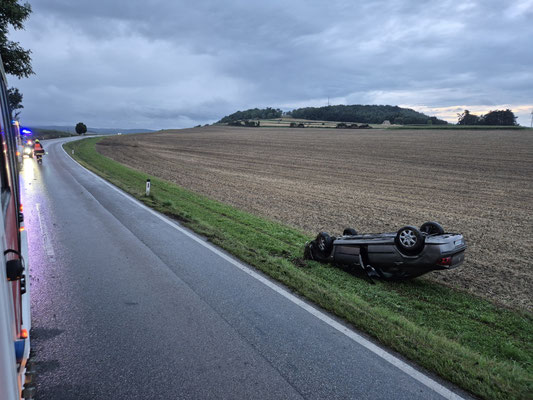 Rasch konnte das Fahrzeug auf die Räder gestellt werden. Anschließend wurde der PKW auf den Mehrzweckanhänger verladen und sicher abgestellt. Nach rund einer Stunde konnte man wieder mit allen Fahrzeugen ins Feuerwehrhaus einrücken. Der Lenker wurde zum Glück nicht verletzt.