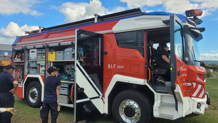 Besonderes Augenmerk galt dem ausgestellten HLF 2 der Feuerwehr Wösendorf. Ein baugleiches Fahrzeug wird die Feuerwehr Statzendorf im kommenden Jahr erhalten.