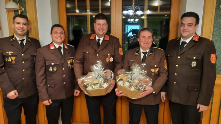 Verwalter Günter Winterleitner, Stellvertreter Thomas Hell, Altkommandant Rudolf Hell sen., sowie Thomas Winterleitner, Andreas Katzenbeisser und Michael Müllner für die gute Zusammenarbeit in den letzten Jahren.