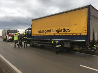 Ein Lastkraftwagen kam aus unbekannter Ursache von der Straße zwischen Rottersdorf und Herzogenburg ab und kam in einem angrenzenden Acker zu stehen.